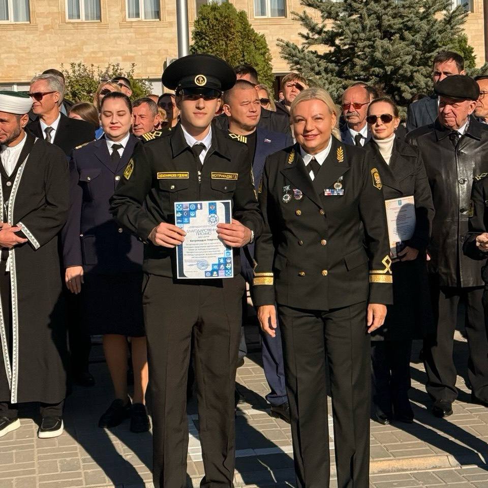 Одним из самых волнительных и символичных моментов торжества стало награждение курсантов, удостоенных стипендии Правительства Российской Федерации на 2025-2026 учебный год. Эта почётная награда – признание выдающихся успехов в учебе, научно-исследовательской работе, культуре и спорте, а также побед в профессиональных конкурсах.