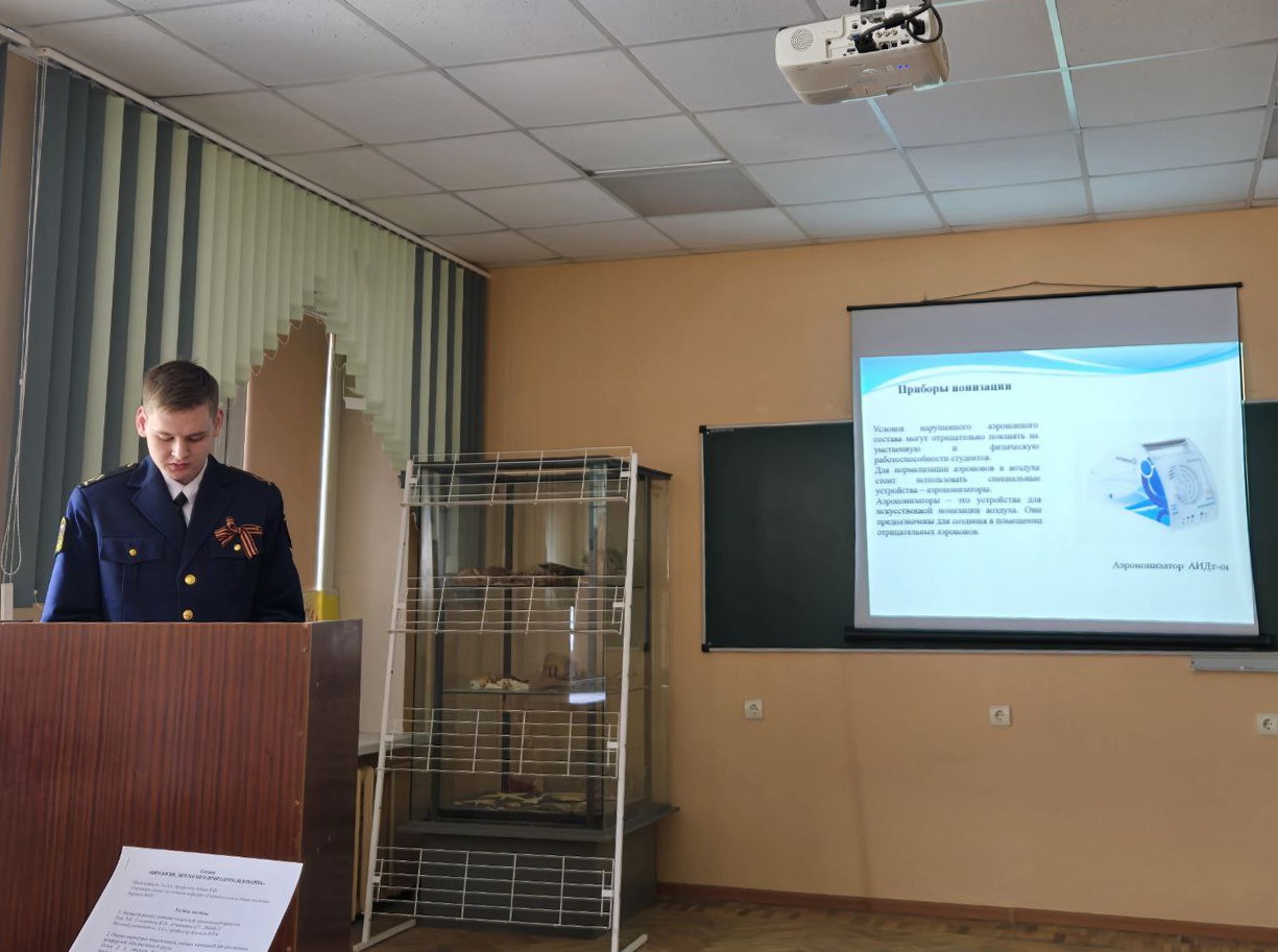 В секции «Биология, экология и природопользование» с устным докладом на тему «Оценка параметров микроклимата учебных помещений для обеспечения комфортной образовательной среды» выступили курсанты группы ДБЭЭМ-11 Попов Д. А. и Мещеряков А. под научным руководством старшего преподавателя кафедры «Математические и естественнонаучные дисциплины» Цыгута А. Н. и к.б.н., декана факультета высшего образования, доцент кафедры «Математические и естественнонаучные дисциплины» Можаровой А.В.