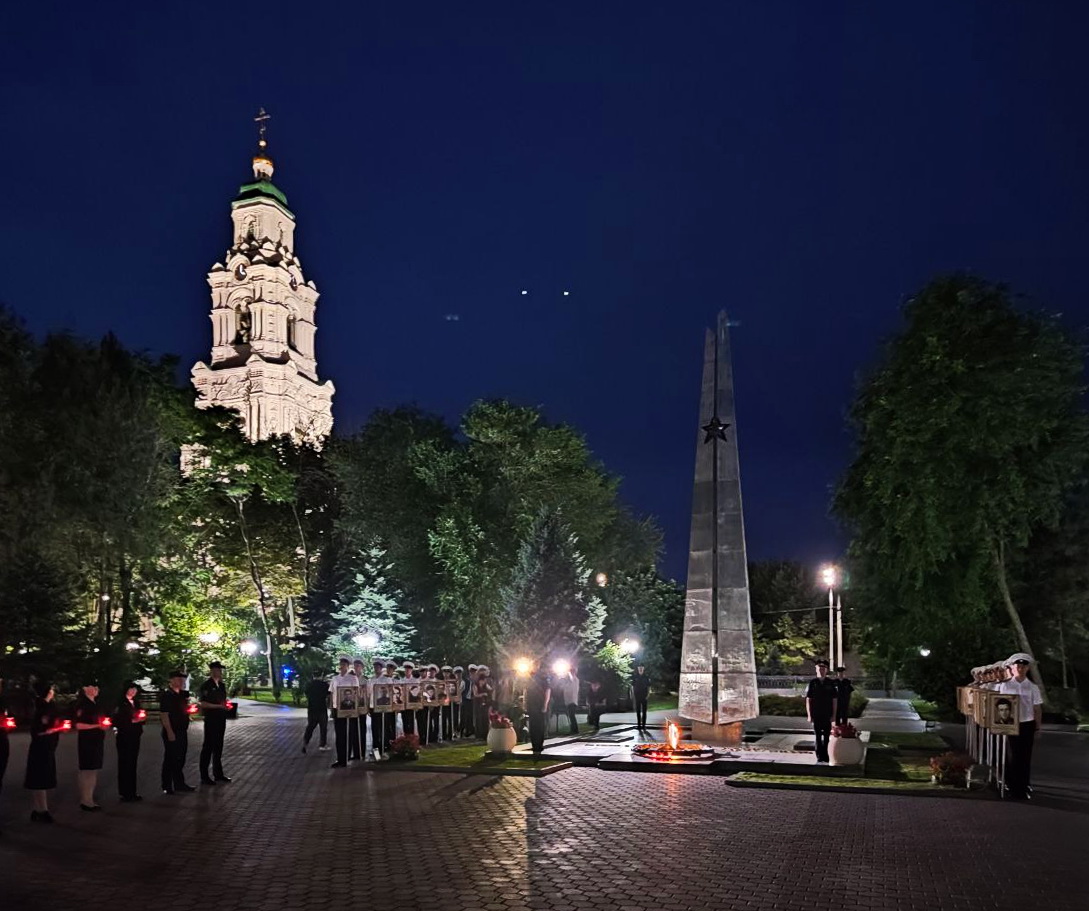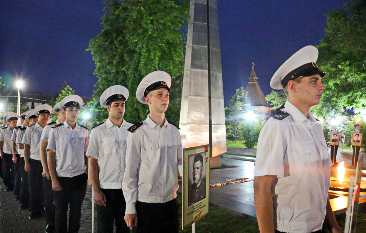 В ночь с 21 на 22 июня во всех регионах страны прошли международные акции — «Огненные картины войны» и «Свеча памяти». В Астрахани в них приняли участие руководители областной и городской власти, представители общественных организаций, ветераны, участники СВО, юнармейцы, поисковики, а также работники и курсанты Каспийского институте морского и речного транспорта им. ген.-адм. Ф.М. Апраксина.