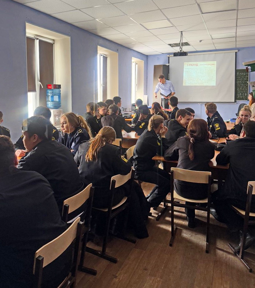 Первая часть викторины в интерактивном формате прошла 26 февраля в Каспийском институте морского и речного транспорта имени генерал-адмирала Ф.М. Апраксина для студентов 2-3 курса факультета среднего профессионального образования, специальности судостроения. Провёл его представитель совета молодых специалистов Иванов Сергей. В соревновании участвовали 3 команды по 10 человек, все получили памятные значки ОСК, а победители – сладкие призы.