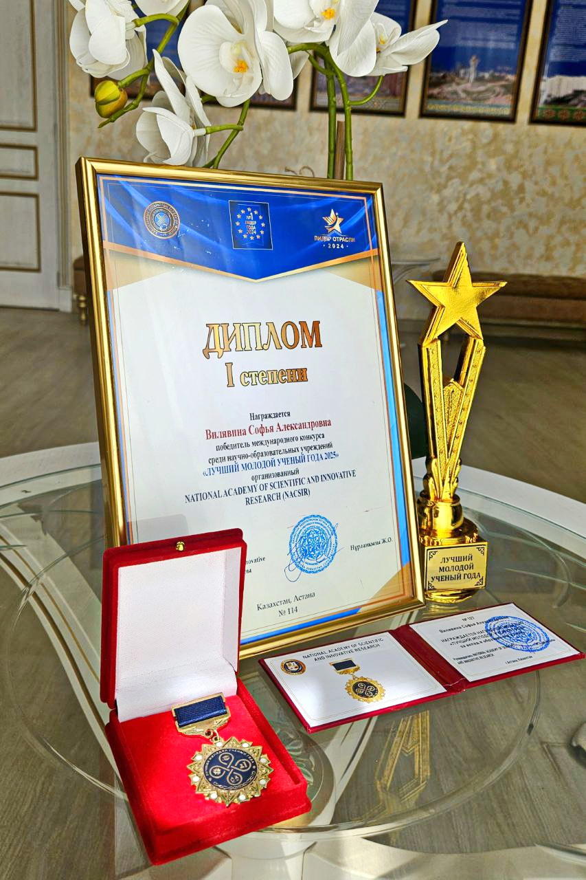 Курсантке 2-го курса группы ОТТП-21 Каспийского института морского и речного транспорта имени генерал-адмирала Ф.М. Апраксина – филиала ФГБОУ ВО «ВГУВТ» Вилявиной Софье Александровне за победу в международном научном конкурсе, организованном Национальной академией научных и инновационных исследований Республики Казахстан присвоено почётное звание «Лучший молодой ученый 2025 года».