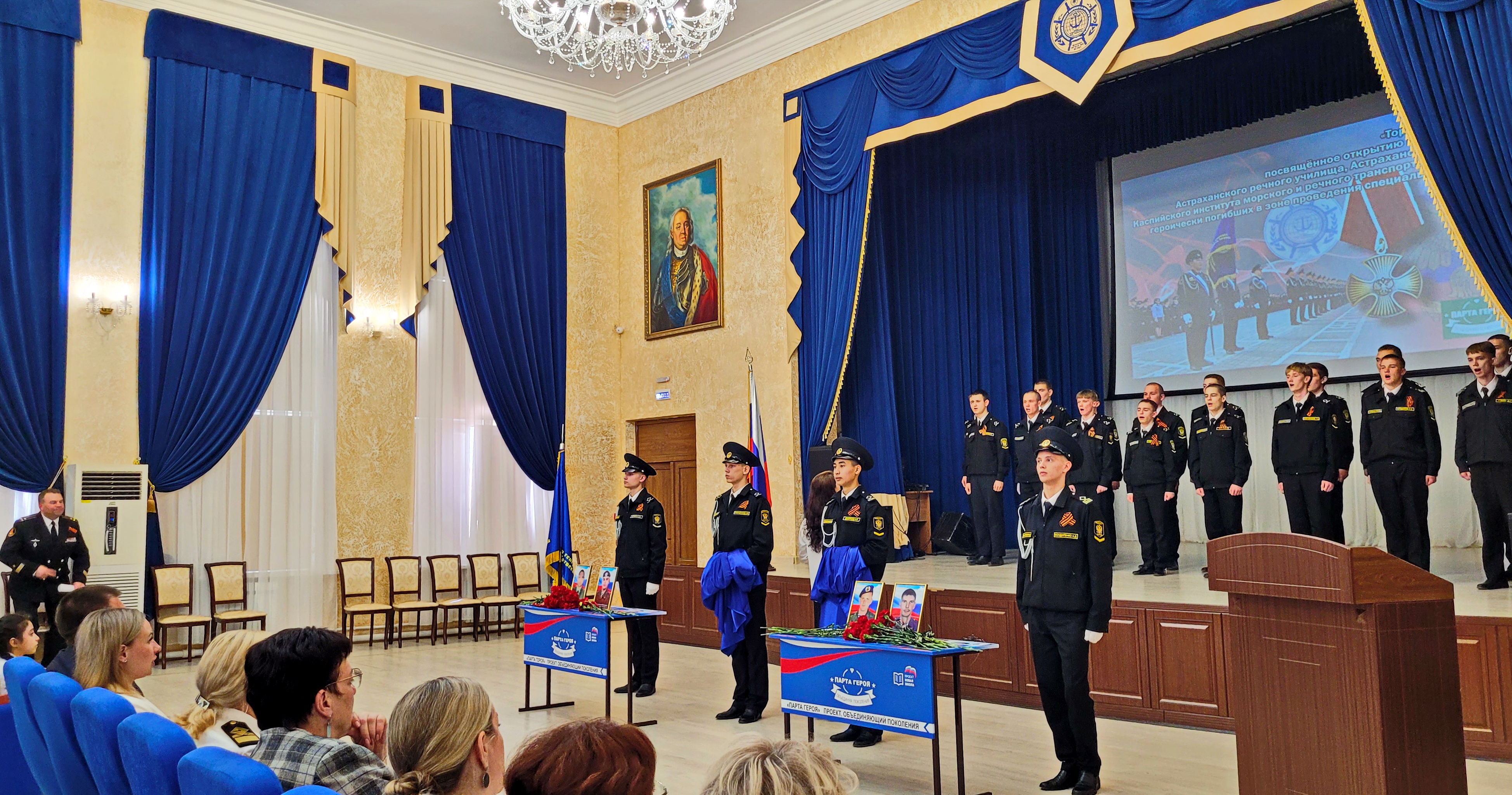 Сегодня мы чтим героев. Мы гордимся ими, солдатами России, выпускниками Астраханского мореходного училища и Каспийского института морского и речного транспорта имени генерал-адмирала Ф.М. Апраксина».