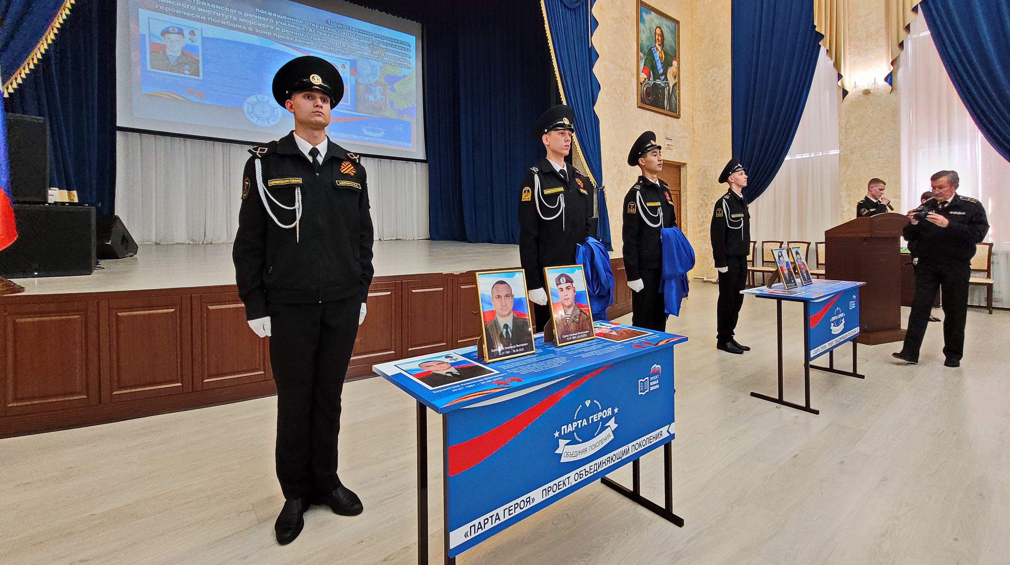 8 апреля в актовом зале Каспийского института морского и речного транспорта имени генерал-адмирала Ф.М. Апраксина прошло грустное, но торжественное мероприятие. В рамках проекта «Новая школа» партии Единая Россия в Каспийском институте установили 2 парты Героев, выпускников Астраханского мореходного училища и Каспийского института морского и речного транспорта имени генерал-адмирала Ф.М. Апраксина.