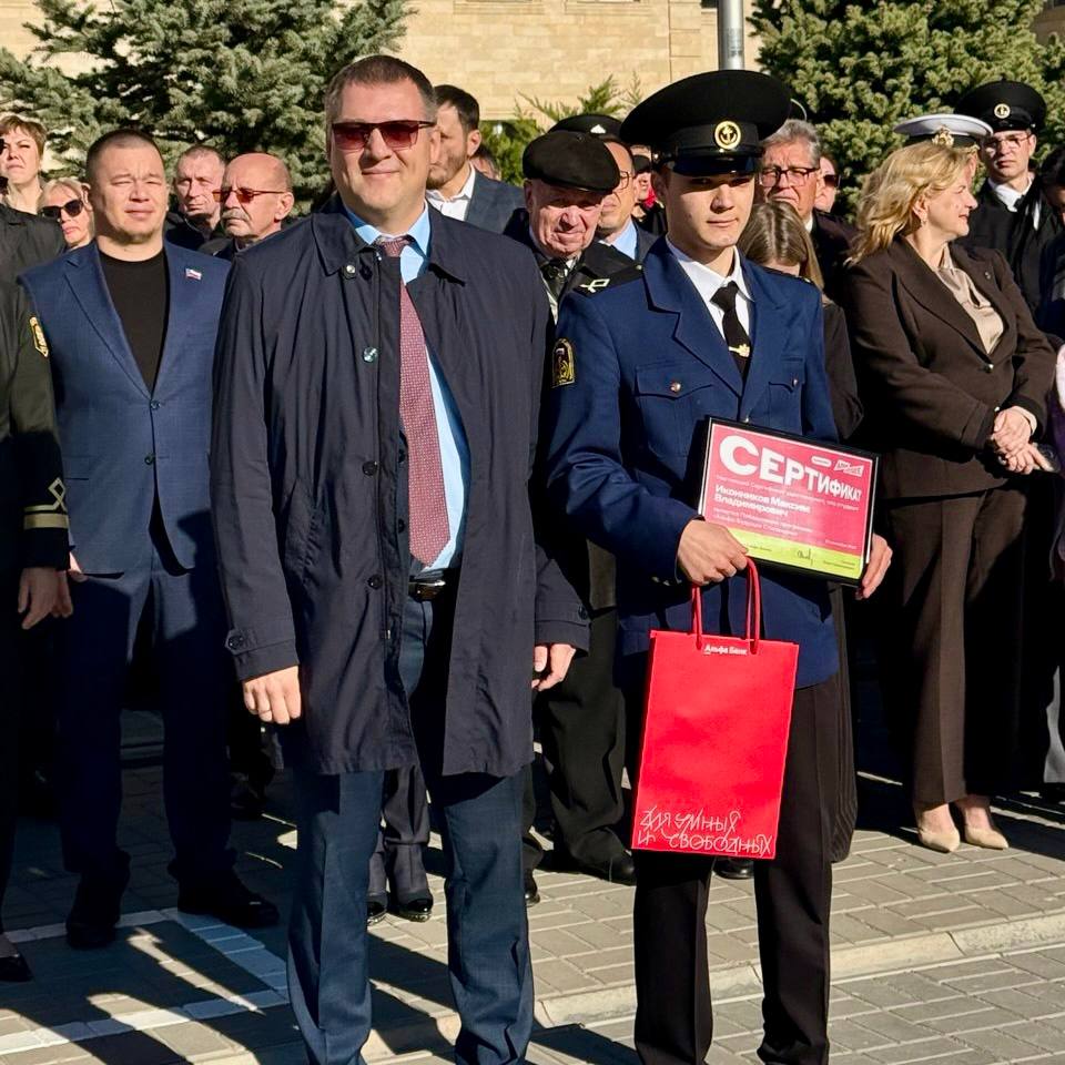 Еще одним ярким моментом церемонии стало награждение за вклад в развитие общественной жизни. С напутственными словами к собравшимся обратилась депутат Городской Думы Астрахани Ирина Заикина. Она вручила благодарственное письмо от председателя Городской думы Игоря Седова курсанту Никите Клименко за его активную гражданскую позицию и весомый вклад в общественную жизнь города.