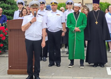 Всё традиционно строго по протоколу, но в этих стандартных и обязательных моментах каждый следующий шаг делал сам ритуал всё более и более торжественным, и волнительным. Напутствия руководителей, пожелания и слова благодарности педагогам от родителей выпускников, принятие традиций и своей вахты от имени первокурсников, наставления старших товарищей, концертные номера, один за одним приближали кульминацию всего праздника.