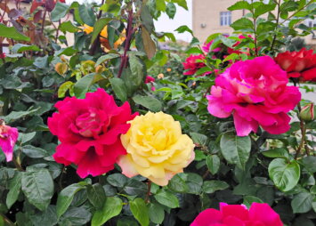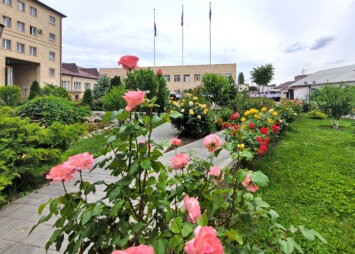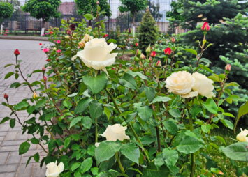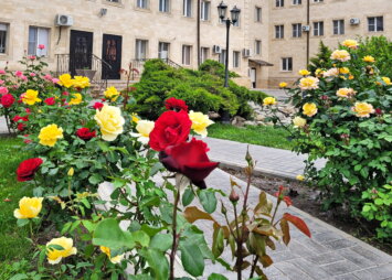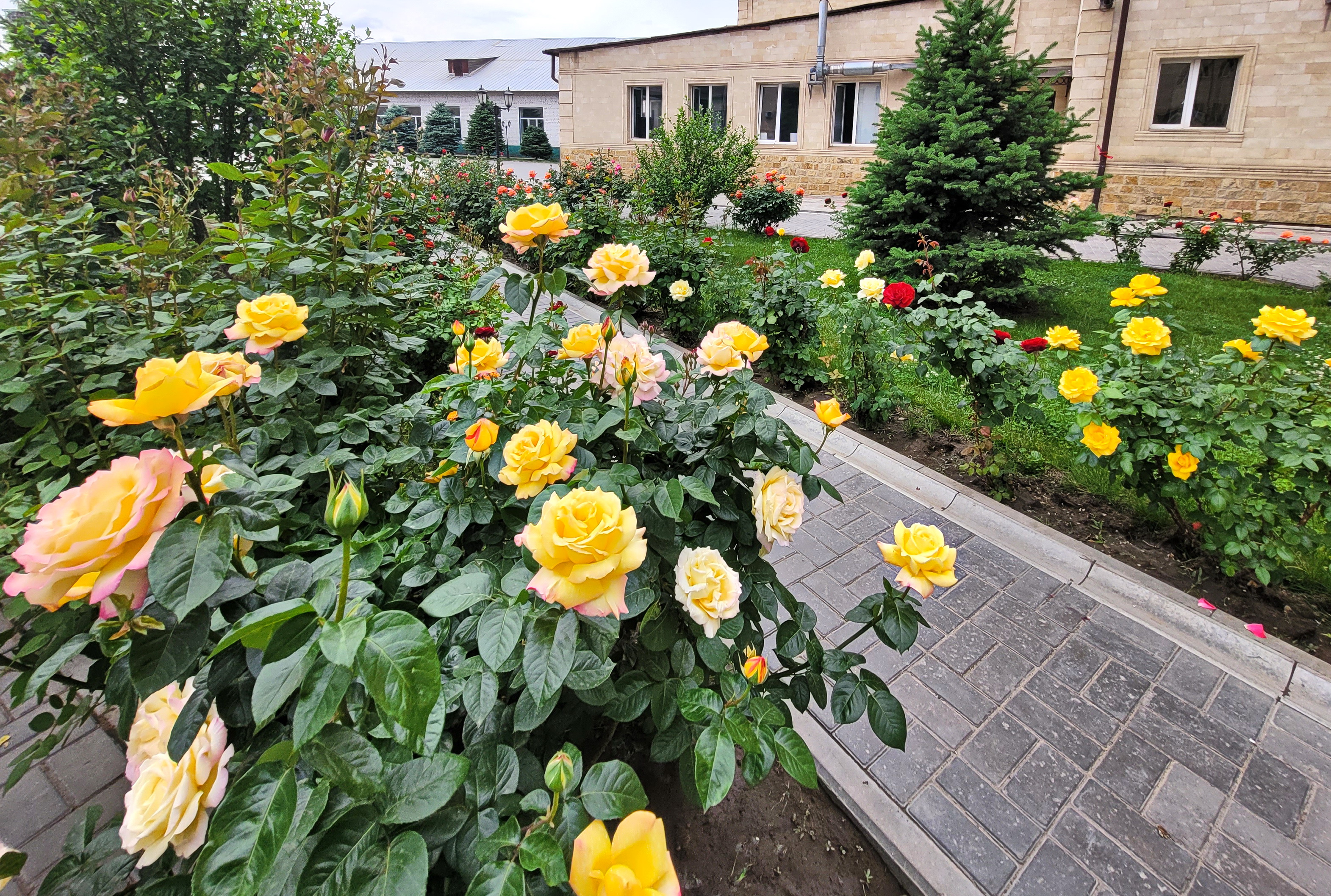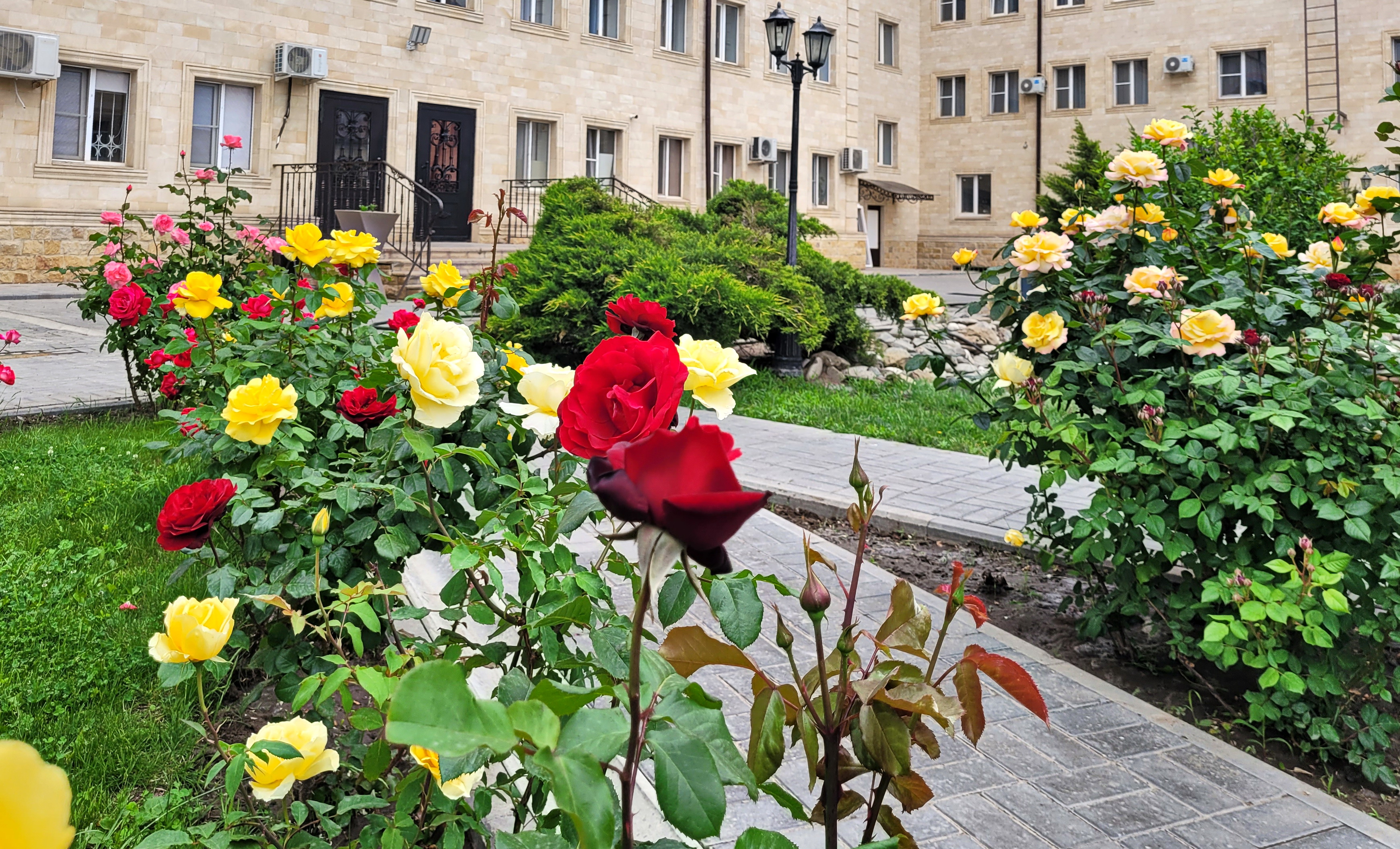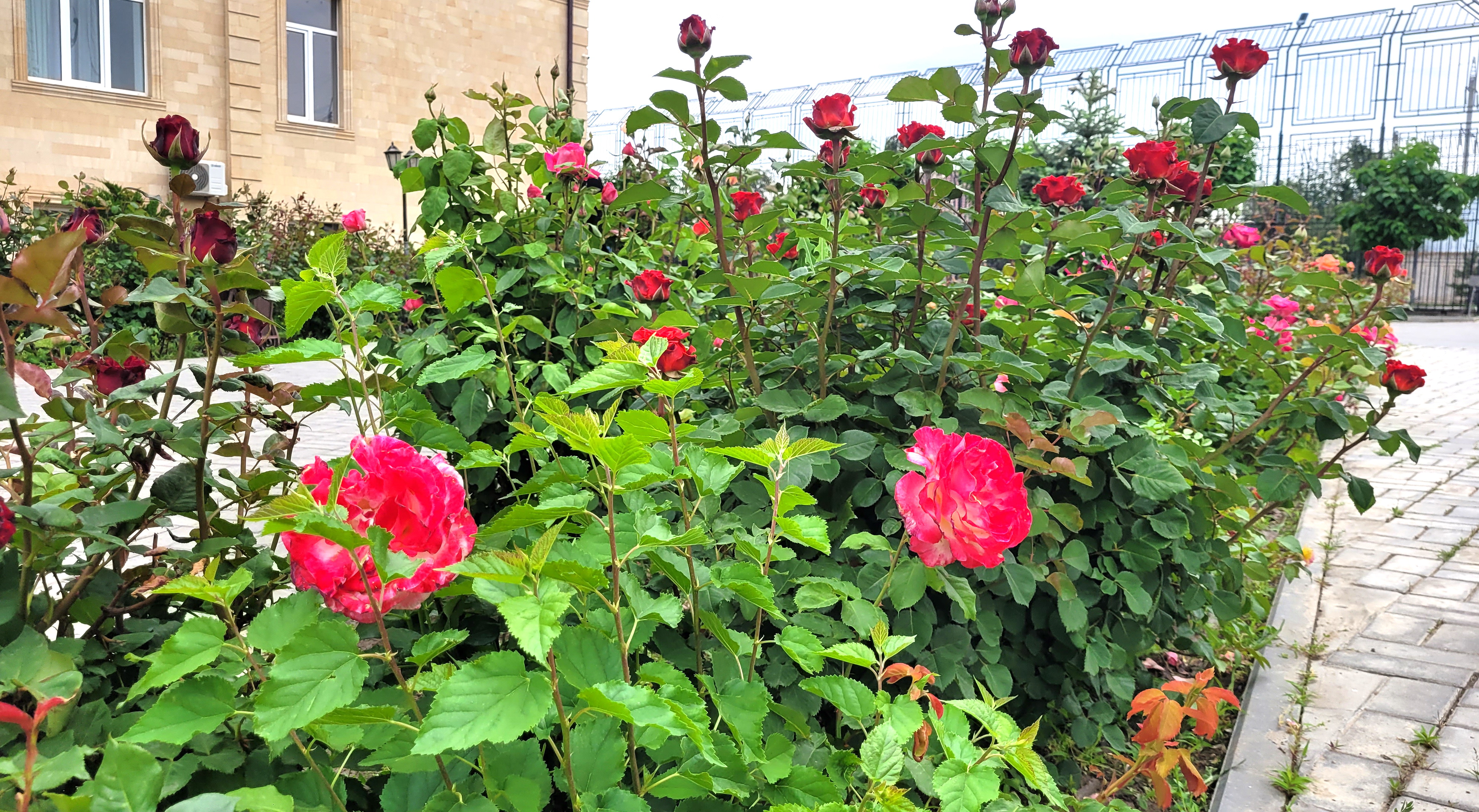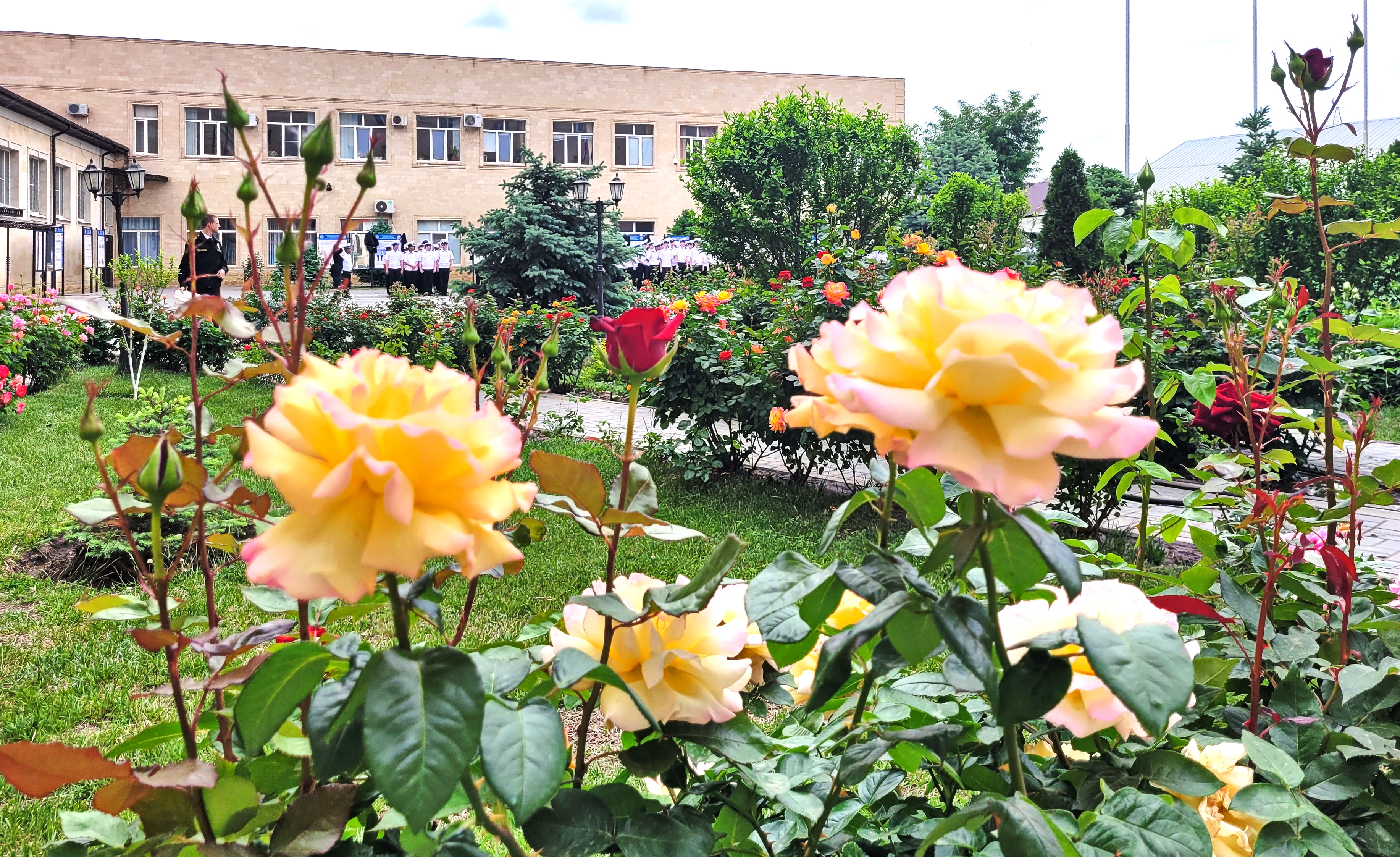 Когда закладывался парк у стен института, то силами курсантов, преподавателей, работников и родителей было посажено более 2000 кустов царицы цветов. Все цвета радуги, десятки сортов стали настоящим украшением не только Каспийского института, но всей Каспийской столицы. Почти каждый прохожий в момент безумного буйства красок, цветов и ароматов не может удержаться, чтобы не сфотографировать удивительное розовое разнообразие.