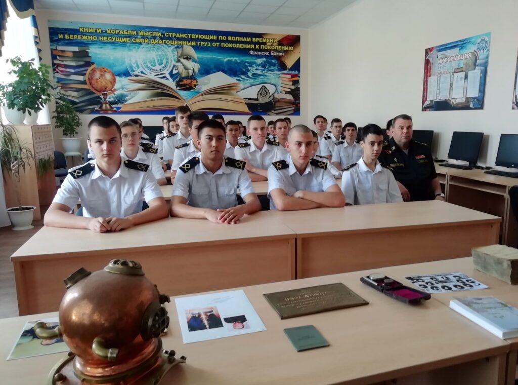 Урок мужества, посвященный истории Российского военно- морского флота провел заведующий военно-историческим отделением Дома офицеров Каспийской флотилии капитан второго ранга в отставке Владимир Васильевич Мясищев.
