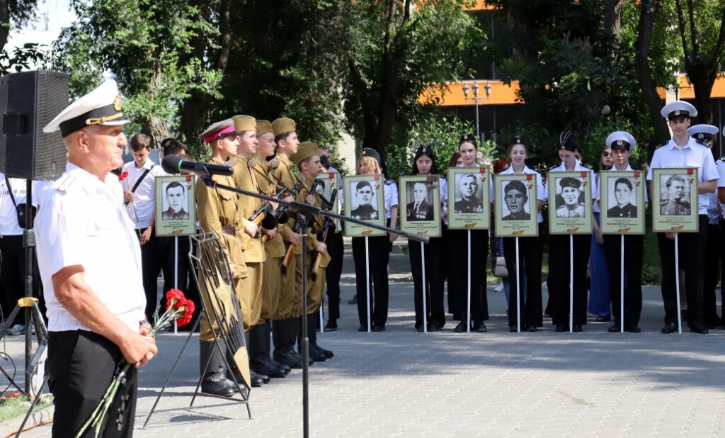 Этот жест символизировал глубокое почтение к памяти погибших и благодарность за их мужество. Курсанты Каспийского института морского и речного транспорта имени ген.-адм. Ф. М. Апраксина также приняли участие в церемонии возложения цветов, что подчеркнуло преемственность поколений и важность сохранения памяти о подвигах предков.