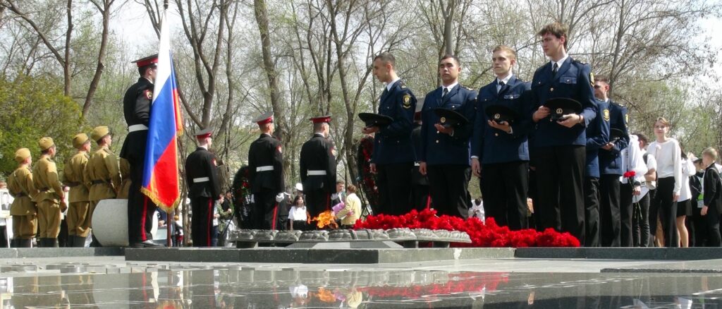 К мемориалу «Вечный огонь славы» в Братском саду города Астрахани направилась делегация, включавшая членов Бюро Центрального совета Всероссийской организации ветеранов, представителей администрации Губернатора Астраханской области и муниципального образования «Городской округ Астрахань». В числе участников были также курсанты Каспийского института морского и речного транспорта им. ген.-адм. Ф.М. Апраксина, которые внесли свой вклад в торжественную церемонию возложения венков.