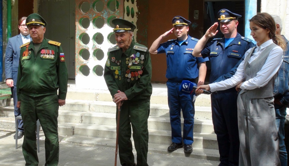 Поздравить ветерана к дому пришло много гостей, в их числе представители администрации Астраханской области, ветераны, военнослужащие, юнармейцы, школьники и жители близлежащих домов.