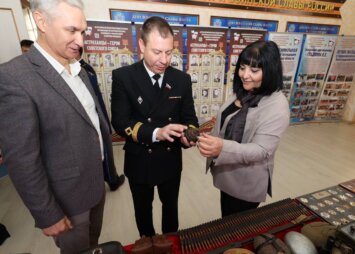 В начале мероприятия начальник отдела международных связей Ангелина Фадина провела для гостей экскурсию, в ходе которой рассказала присутствующим о традициях флотского образования. В холле института была развернута фотовыставка, которая познакомила всех с участниками СВО – уроженцами Астраханской области, проявившими героизм в зоне боевых действий. Также здесь расположилась экспозиция от поискового отряда «Лотос», где было представлено историческое оружие времен Великой Отечественной войны.