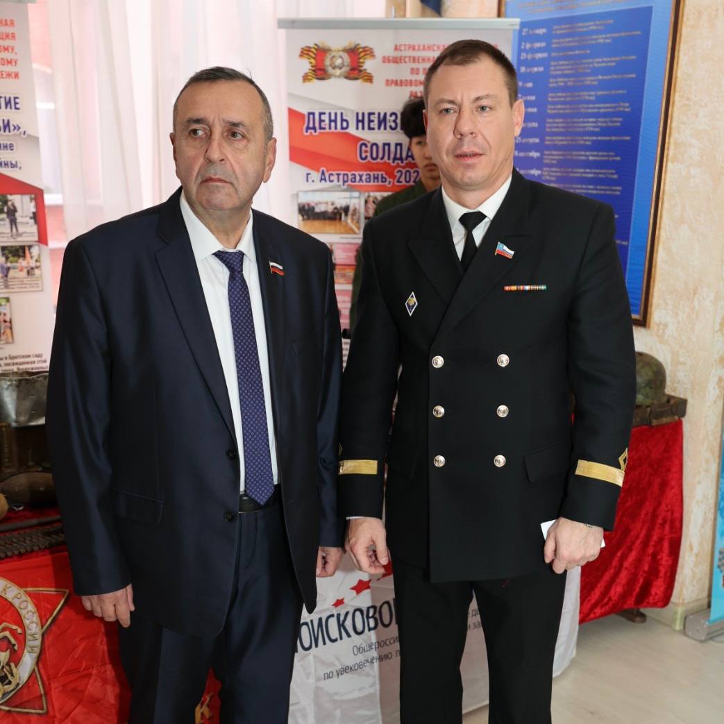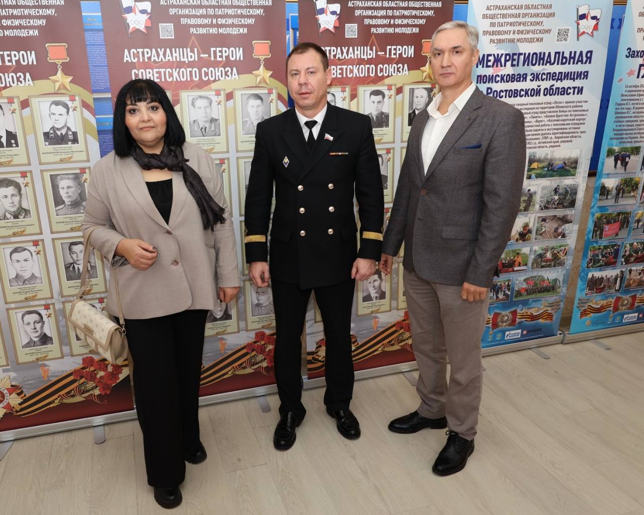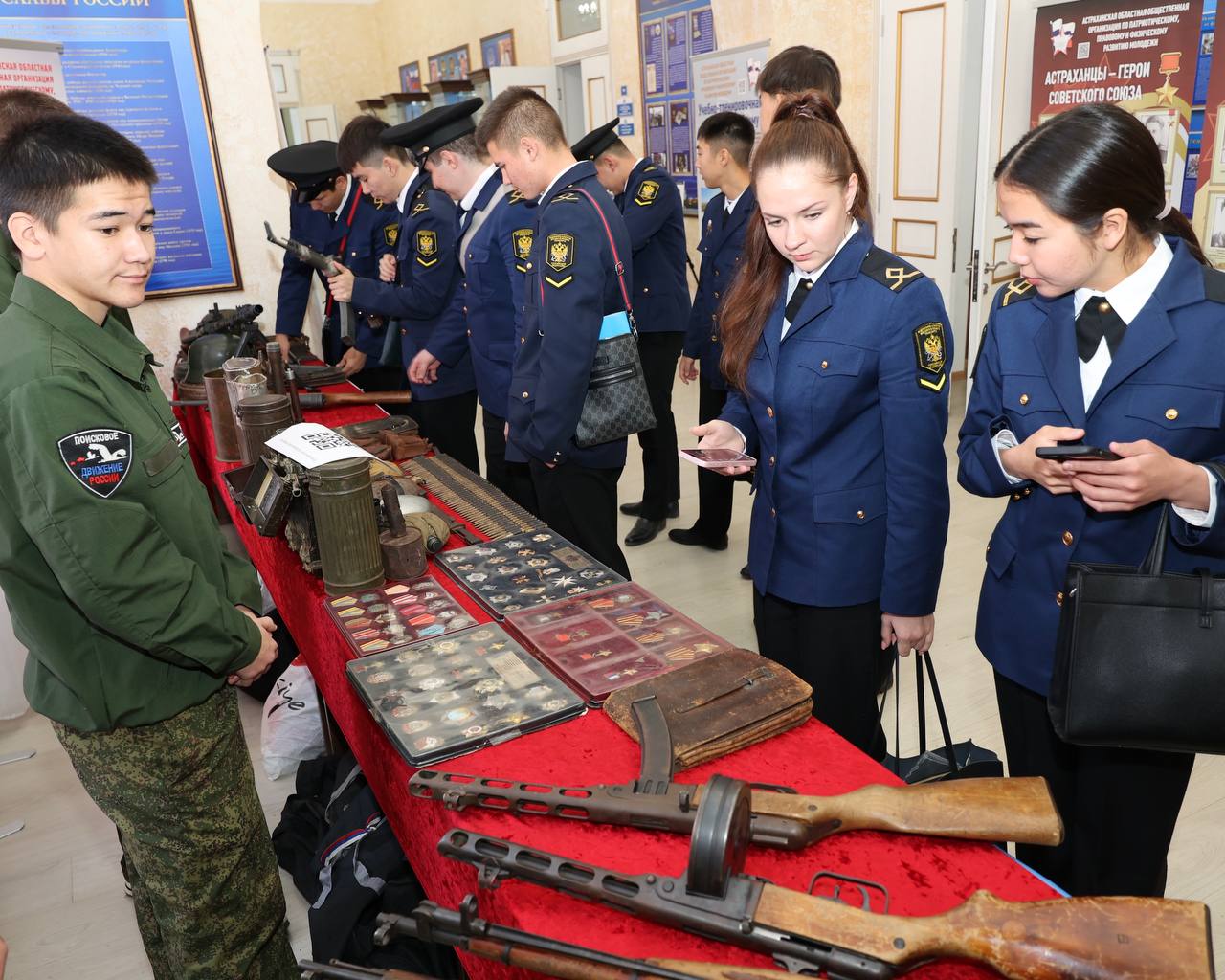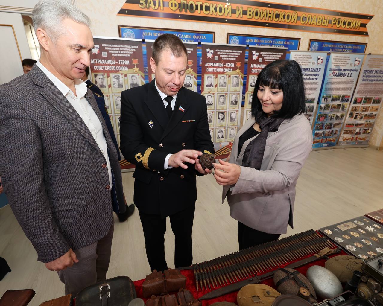 В начале мероприятия начальник отдела международных связей Ангелина Фадина провела для гостей экскурсию, в ходе которой рассказала присутствующим о традициях флотского образования. В холле института была развернута фотовыставка, которая познакомила всех с участниками СВО – уроженцами Астраханской области, проявившими героизм в зоне боевых действий. Также здесь расположилась экспозиция от поискового отряда «Лотос», где было представлено историческое оружие времен Великой Отечественной войны.